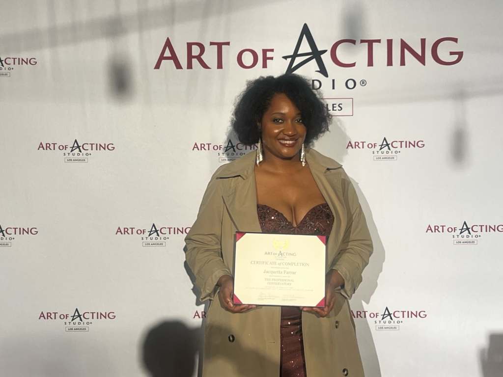 Her accomplishments go beyond that as well, she’s repped and managed by The Option Agency and by Simmons and Scott Management. She is a bi-coastal based talent who has impeccable comedic timing, Aunjanue Ellis-Taylor and Angela Bassett’s dramatic presence, and a love for visual arts. In fact, she landed in the Bay Area to work out and perform with the African-American Shakespeare Company. She has come a long way and is determined to show up, show out, and act up! Her journey across the country to the west has been one of endurance, perseverance, and success. When I met Jacquetta, it was via the Organization of Black Screenwriters when she had joined my group, “ATLANTA FX.” This wonderful Black woman is adamant about her successes, and it’s only up from there.